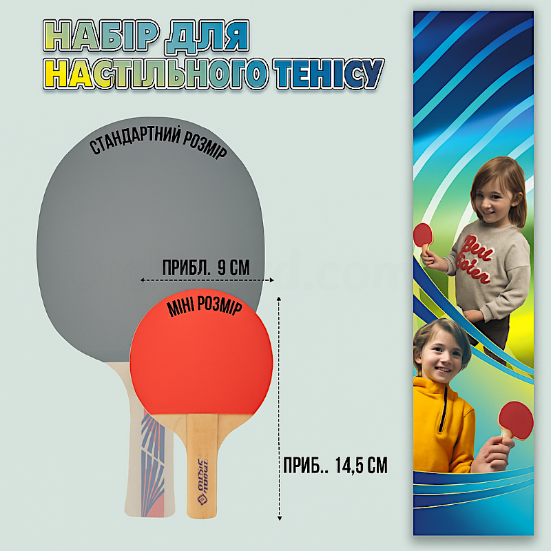 - Ракетки: 2 міні-ракетки з FSC-сертифікованого дерева з гумовим покриттям;