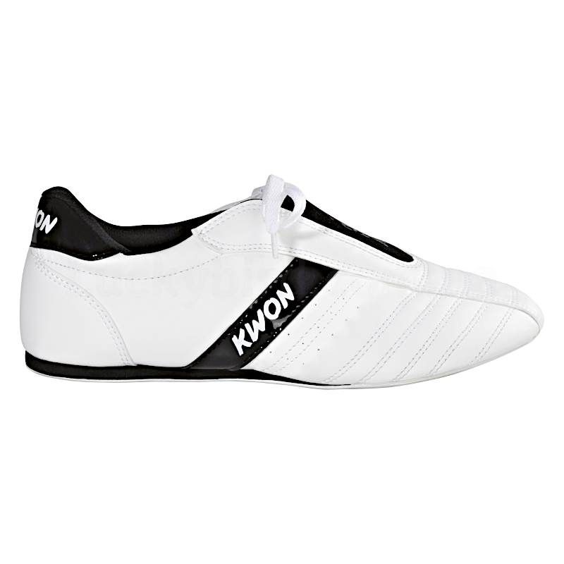 Легке і довговічне тренувальне взуття Kwon Dynamic створене для використання в залах і підходить для різних видів єдиноборств. Виготовлене з синтетичної шкіри з тонкою еластичною гумовою підошвою, воно забезпечує надійне зчеплення з покриттям підлоги, а піднятий задник підвищує стабільність стопи під час рухів. Подвійні шви гарантують міцність, а вентиляційні отвори по боках сприяють циркуляції повітря, запобігаючи перегріву ніг. Для впізнаваності на бокових смугах та верхній частині нанесений логотип KWON.